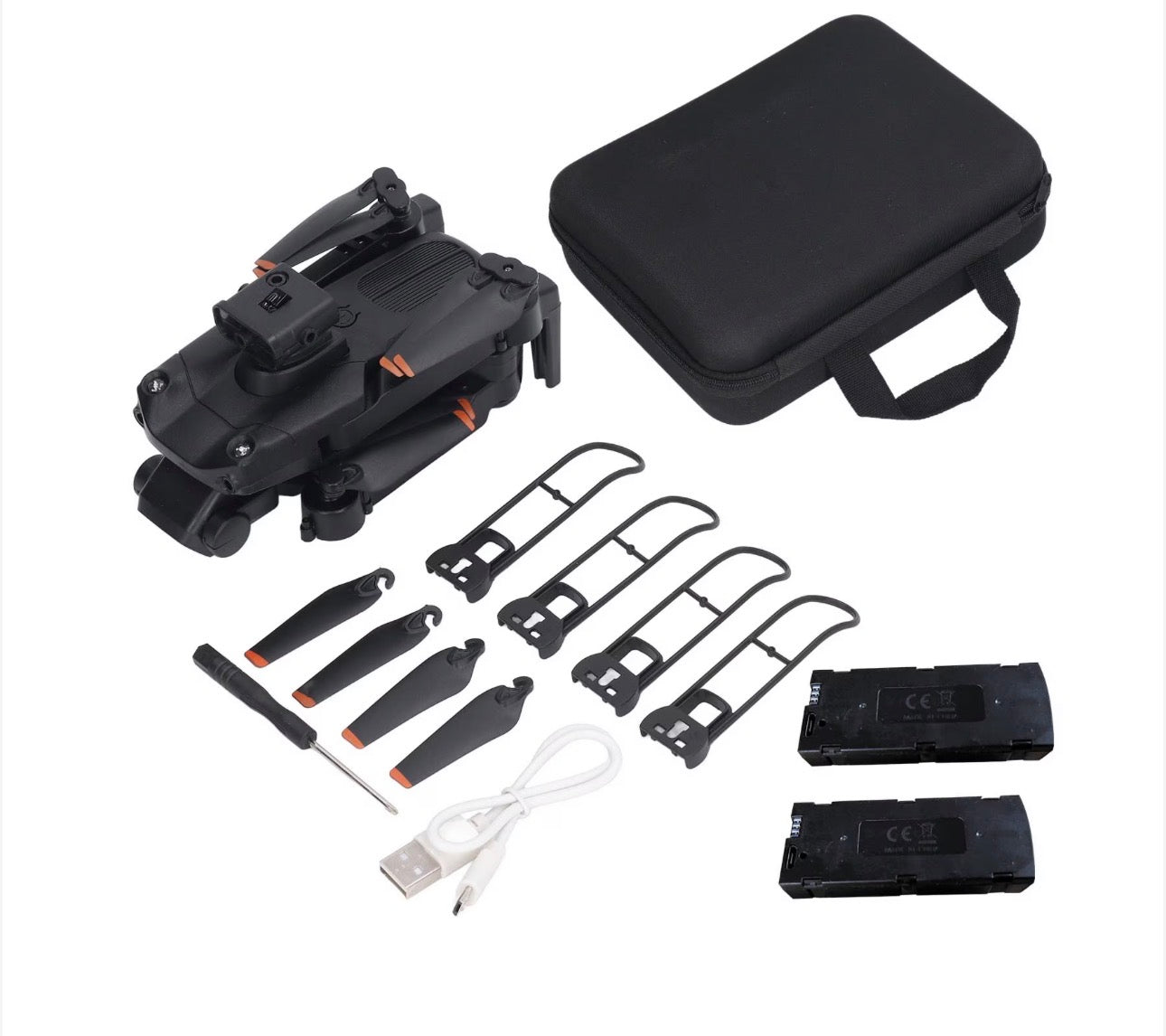 Összecsukható RC drón dupla 4K kamerával, 5 oldalas akadályelkerüléssel, fekete, 14 év feletti gyermekek számára, 2 elemmel együtt