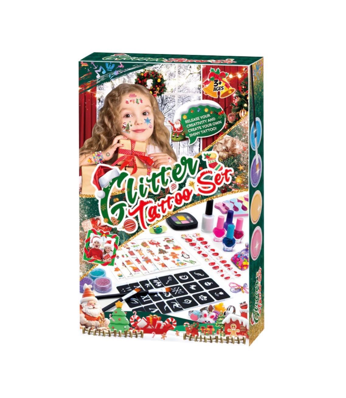 - Fényes DIY tetoválások : Engedd szabadjára gyermeked fantáziáját. könnyen használható, biztonságos és nem mérgező tetoválókészletünkkel. Készítsen káprázatos mintákat, amelyek ragyogni fognak ebben az ünnepi szezonban.