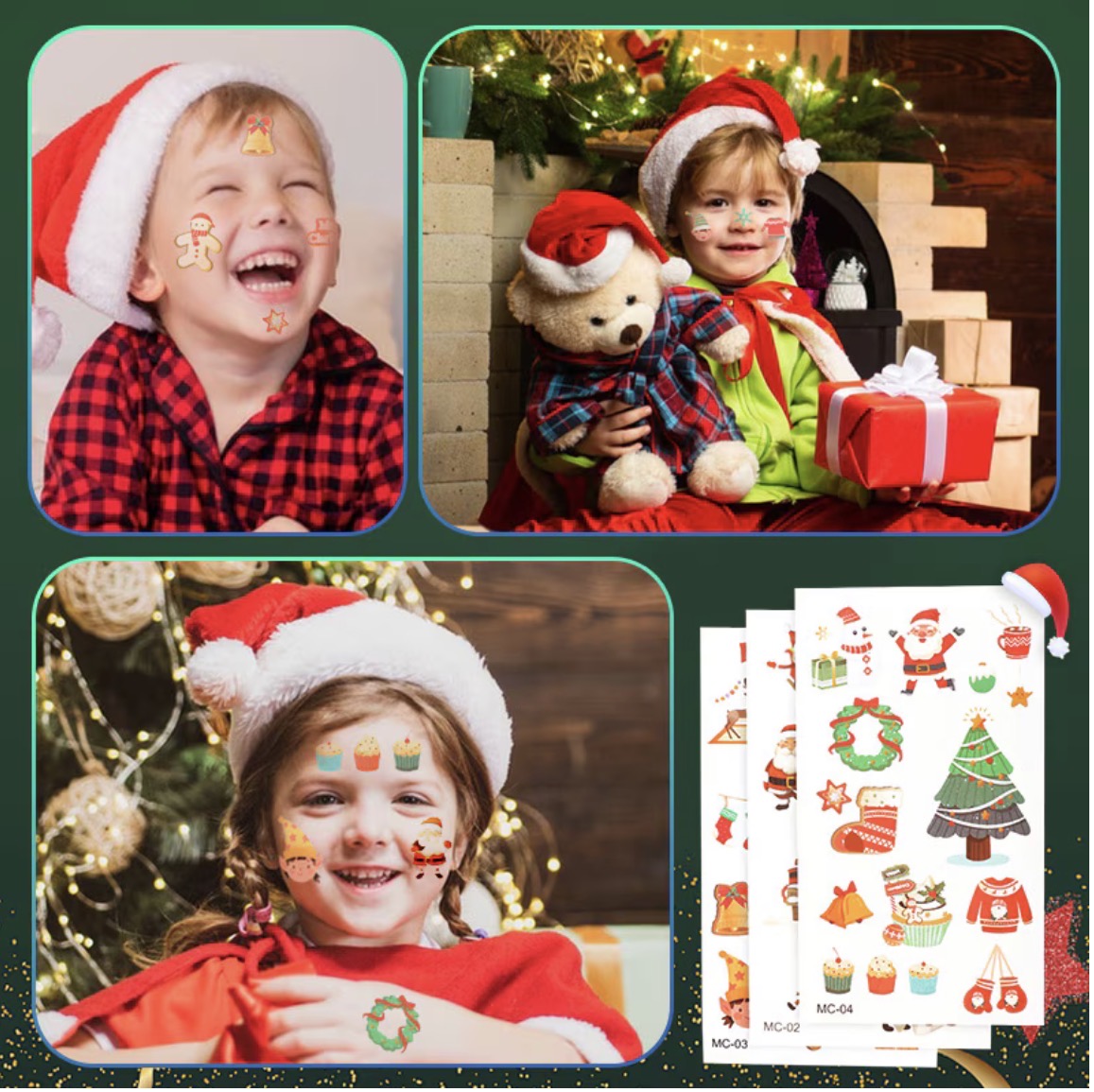 Karácsonyi témájú csillámtetoválás