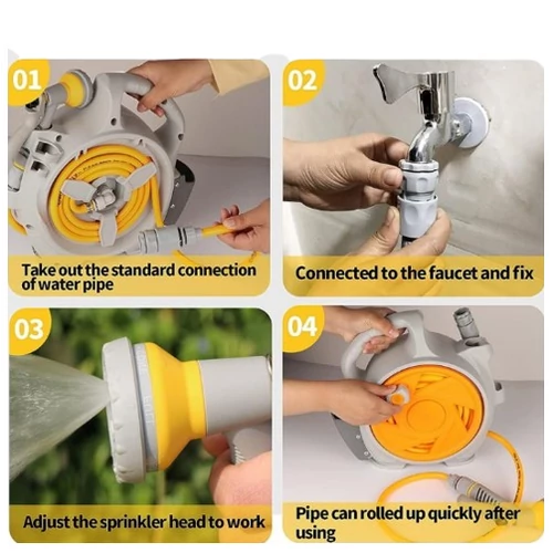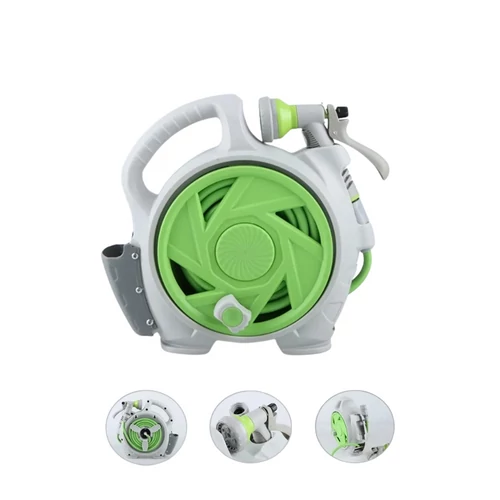 A dobos kialakítás nemcsak a tárolást könnyíti meg, de a kiegészítő csővel közvetlenül a csaphoz csatlakoztatható, így nem kell a teljes tömlőt letekerni használat előtt. A véletlenszerű színben érkező termék (zöld, narancssárga, rózsaszín vagy kék) praktikus kiegészítője lehet bármely kertnek.
