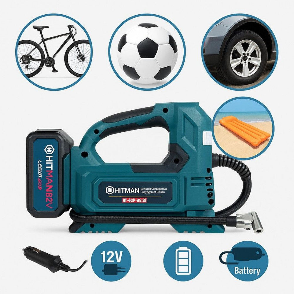 Hitman HT-ACP-6831 Akkumulátoros Kompresszor 62V, Autó- És Kerékpárgumihoz