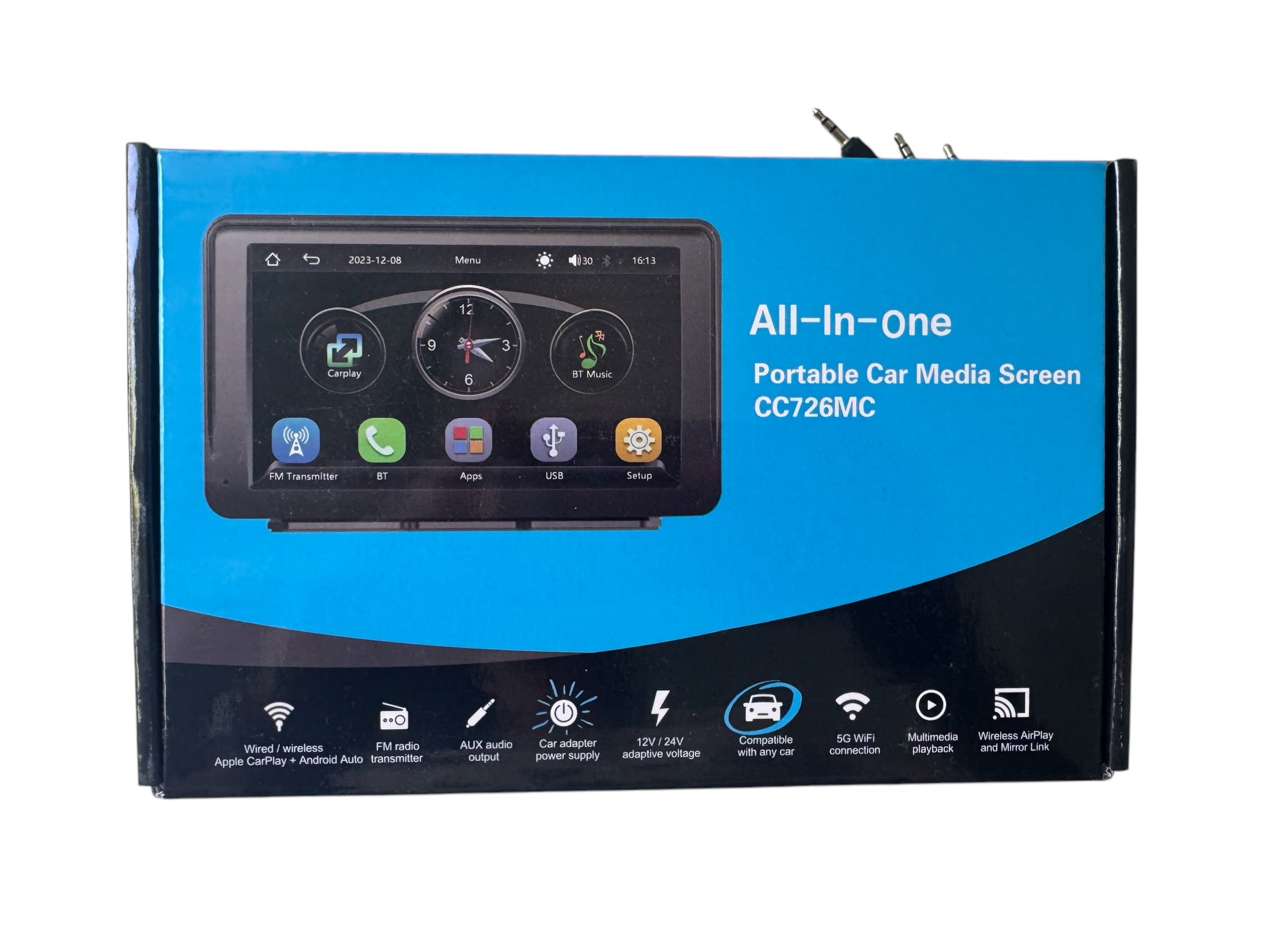 Hordozható 7" Autós Kijelző CC726MC: A hordozható autós kijelző nemcsak a szórakoztatásról gondoskodik, hanem a navigációs és egyéb autós funkciókat is egyszerűbbé és kényelmesebbé teszi. Csatlakoztassa és játssza le: egyszerű telepítési módszer, nem szükséges a gyári autófelszerelést cserélni vagy szétszerelni. 7 colos univerzális méret, minden típushoz megfelelő. VW / Nissan / Toyota / Honda / SEAT / KIA / HYUNDAI / FORD / MAZDA... modellekhez. Támogatja a kapcsolódást az eredeti autórádióhoz, használja az eredeti autó hangminőségét, megőrizve az eredeti autórádió és annak funkcióit. Vezeték nélküli Carplay & Android auto, Apple és Android mobiltelefonokhoz megfelelő, szinkronizálhatja mobiltelefonjának oldalait, amikor beszáll az autóba. Bluetooth támogatás, kihangosító hívások és Bluetooth zene lejátszása. Több eszköz támogatása. Egyszerre akár 2 eszköz is csatlakoztatható. Támogatja az SD kártyát/U lemezt, zene és videó lejátszására. FM transzmitter működési módja: Válasszon egy frekvenciát az MP5 lejátszóra, például: FM93.6MHz (Frekvencia kiválasztásakor kerülje a helyi adófrekvenciával való átfedést a jelzavarás elkerülése érdekében) Keresse meg az eredeti autórádióban az MP5 lejátszóról küldött FM93.6MHz frekvenciát. Ebben az esetben az MP5 lejátszó hangja az eredeti autórádión keresztül szólal meg. Adatok: Vezeték nélküli Carplay&Android Auto Google Térkép/Waze/Apple Térkép a Carplay&Android Auto rendszerben Bluetooth 5.0 Tükörkép-kapcsolat HD Kijelző Tolatókamera FM Átvitel Idő Memória (Mivel ennek a kijelzőnek az áramellátása autós csatlakozón keresztül történik, nincs memória funkciója, idő memória funkcióhoz csatlakoztatnia kell a telefonját.) Ez a termék nem Android rendszert futtat, és nincs WiFi funkciója. Támogatja az iOS vezeték nélküli CarPlay-t és az Android vezeték nélküli képernyő vetítési funkcióját!